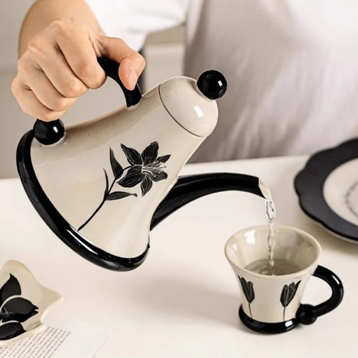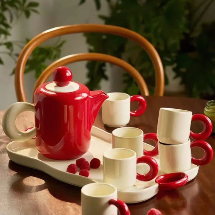 Yugena Tea Set ” Comes with 1 teapot , 6 ceramic cups , a built-in tray , elegant gift box and three option colors